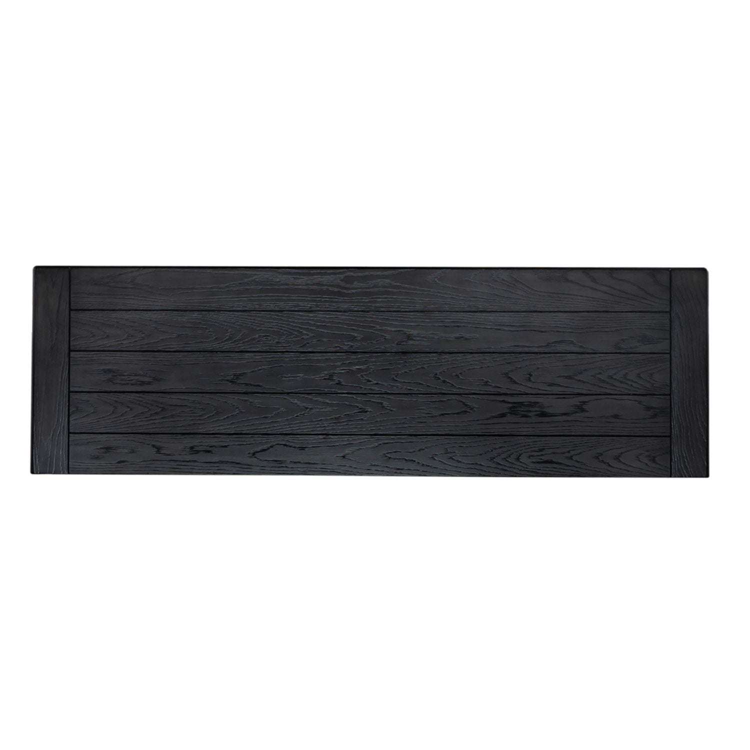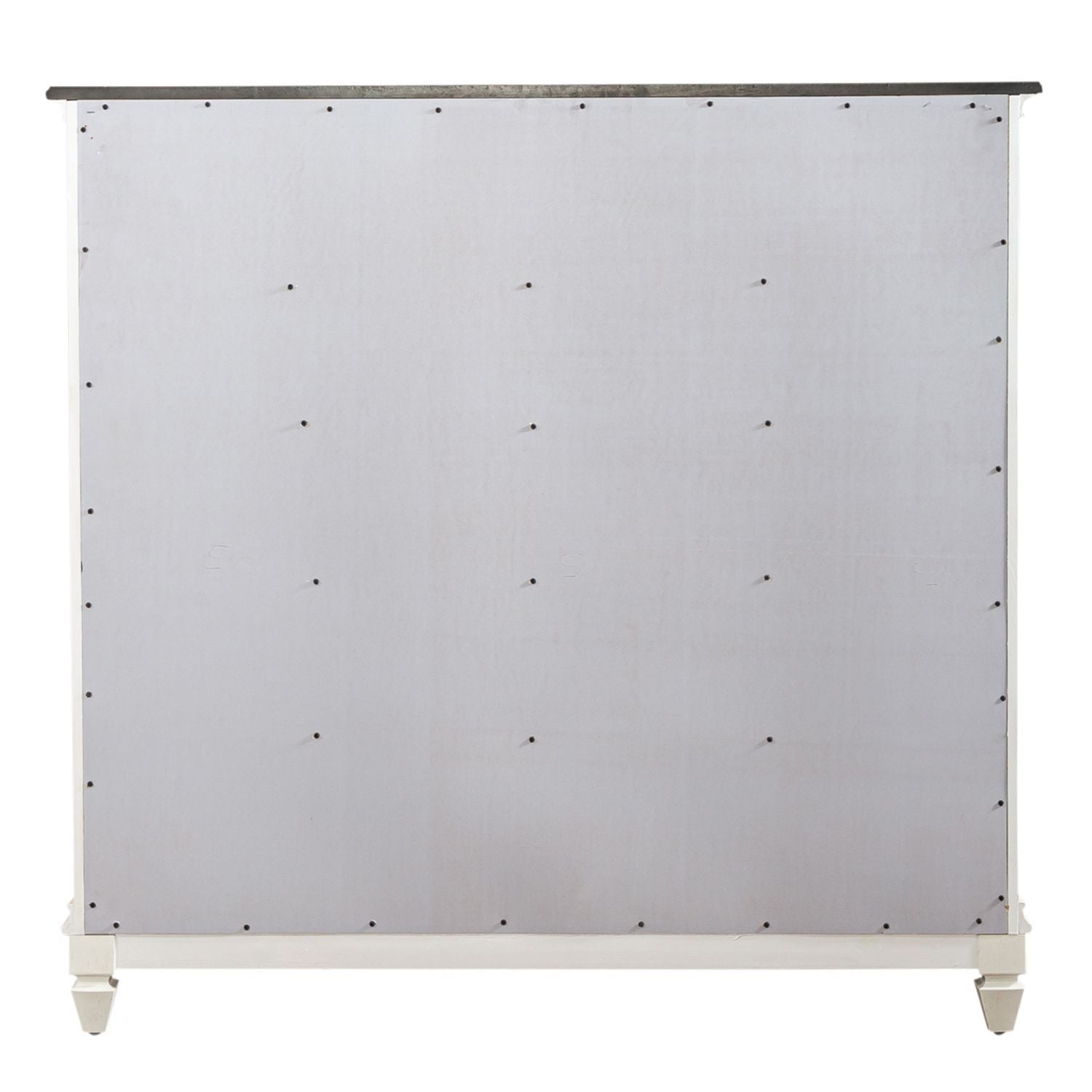 The two-toned wire brushed white finish with charcoal top adds a taste of vintage, allowing this piece to work from the mountains to an industrial loft. The charcoal top is accented by planks while the white base is highlighted by bead molding and antique pewter hardware. Crafted of rubberwood solids with cathedral white oak tops, this piece features fully stained interior drawers, full extension drawer glides for easy access to storage, felt lined top drawers, and is anchored by tapered feet. Style uncompromised with storage abound, enjoy the ample drawer storage, each equipped with bottom case dust proofing.