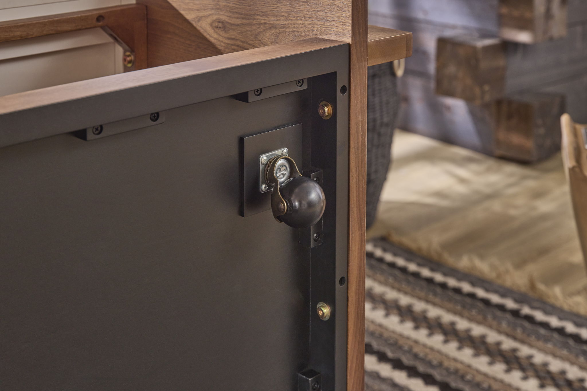 - Hidden casters for easy moving through your home
