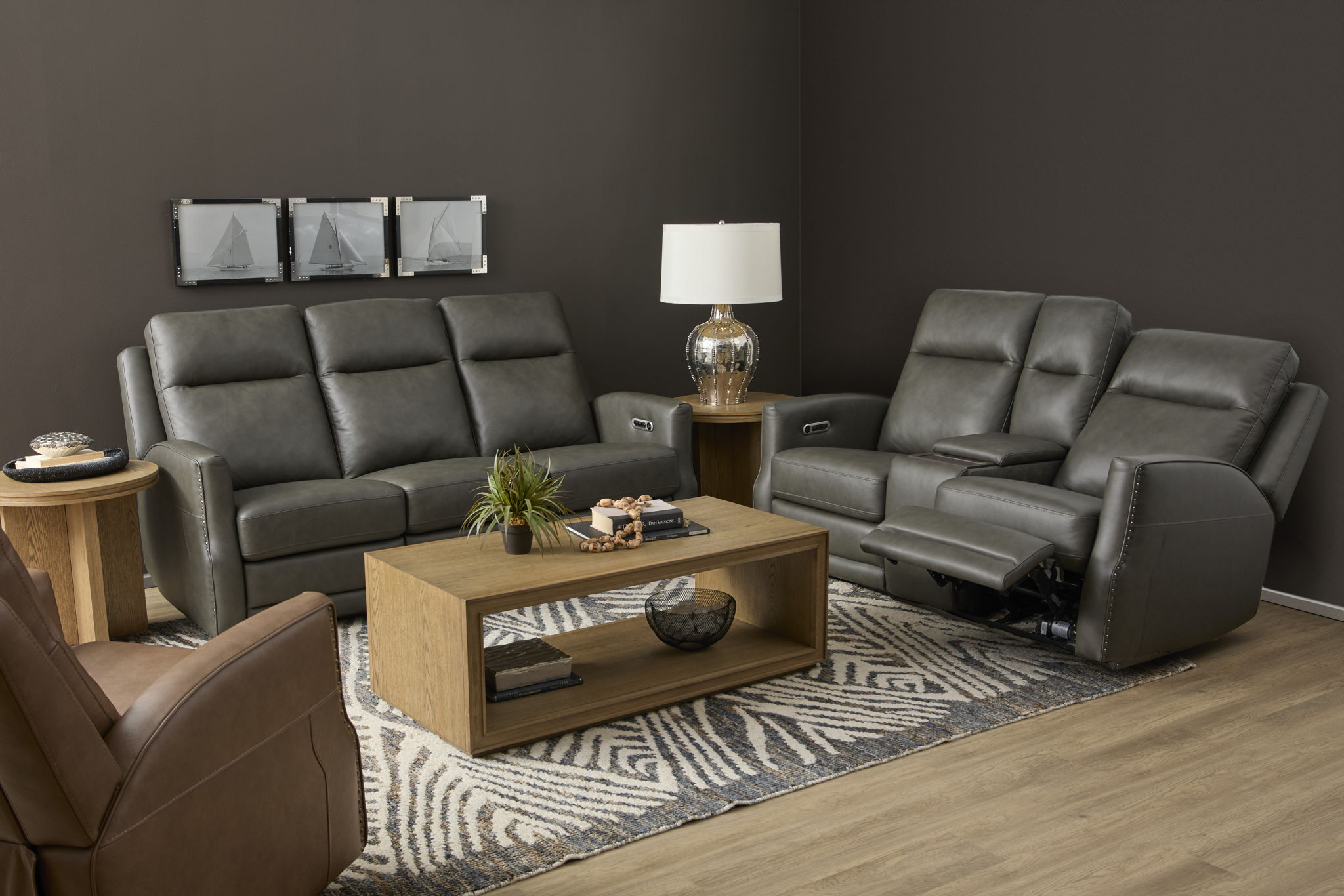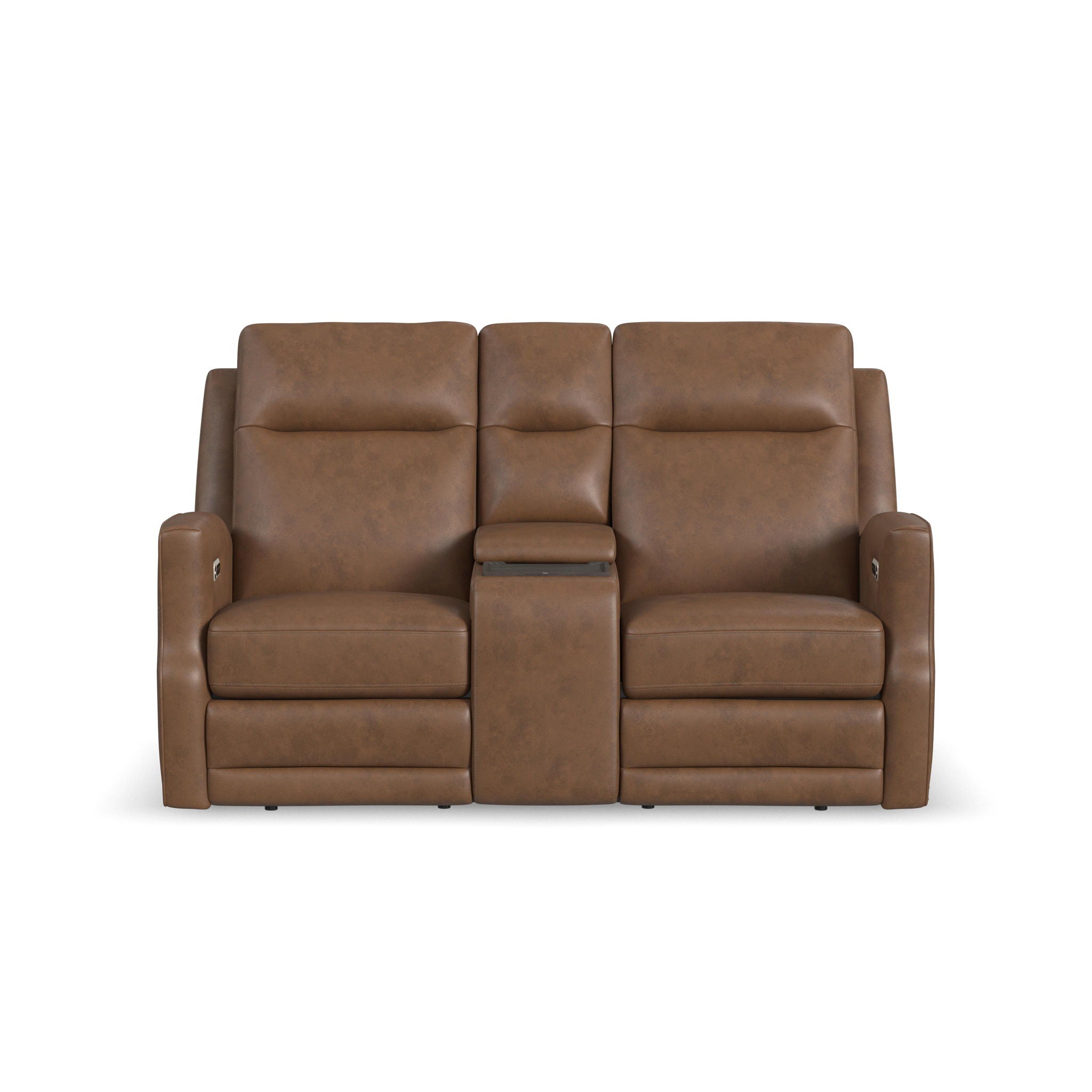 The Maxwell reclining loveseat has all the grand, noble gravitas to make a statement, complete with the cutting-edge comfort you need to relax. This traditional design brings a vintage flair along with triple-power recline for modern relaxation. The Maxwell loveseat includes a center console with storage, cupholders, and a wireless charging tray to charge all your devices. Upholstered in rich leather options and complete with a gleaming nailhead trim, Maxwell brings all the vintage style you want together with the innovative comfort you need.
