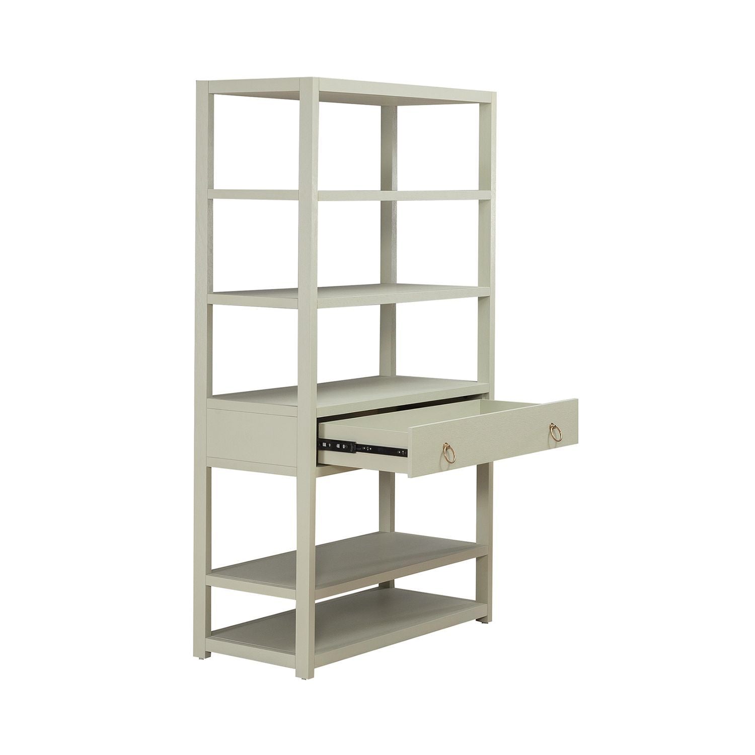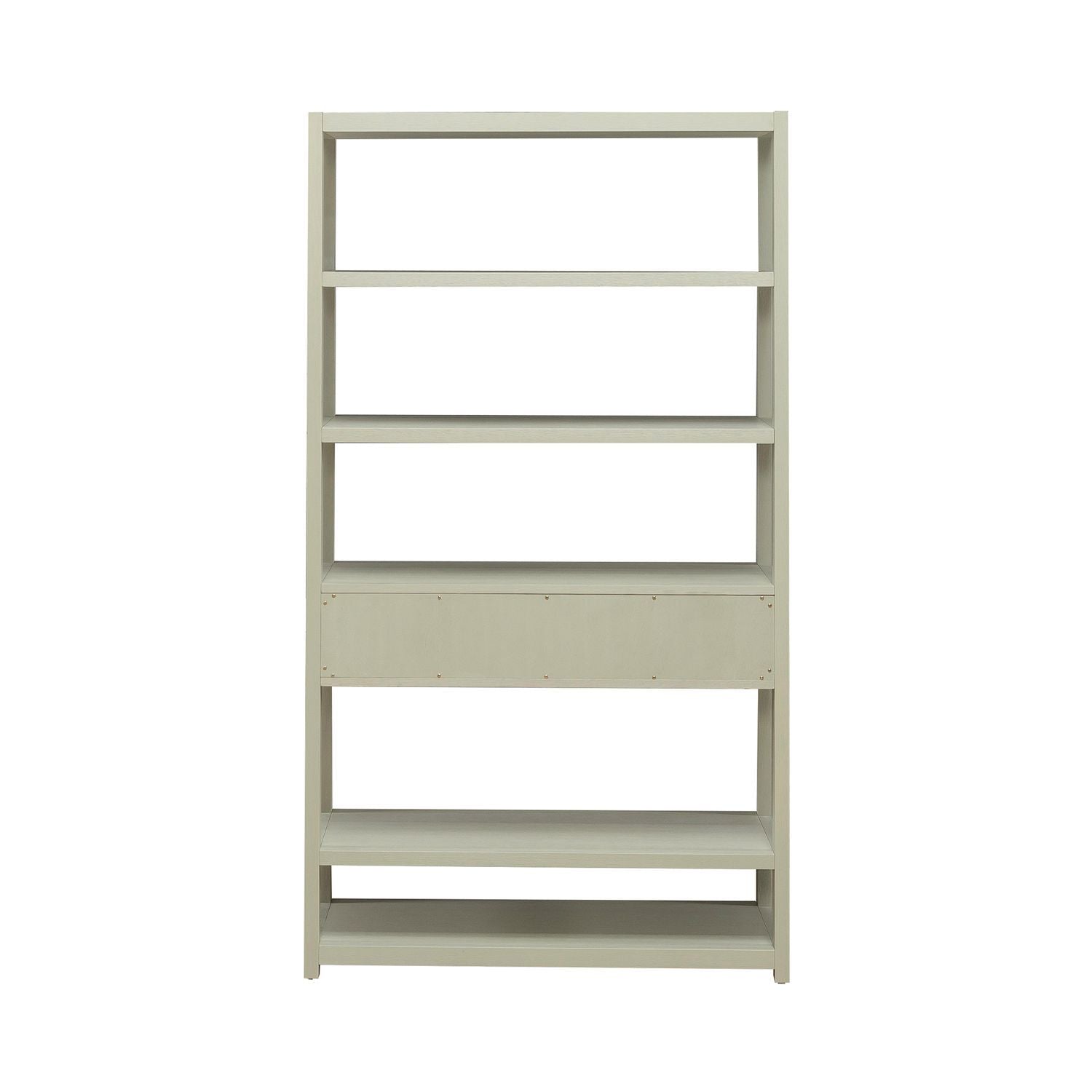 Turn your house into a home with the eclectic East End accent bookcase. Crafted of Acacia Solids and veneers, this piece features a wire brushed finish accented with brass ring hardware. This bookshelf offers six shelves for storage and display as well as a full extension drawer for additional storage. This piece is versatile enough to work in any room and transform the ordinary into the extraordinary. Unique and timeless, allow the East End accent bookcase to bring inspirational design into your home.