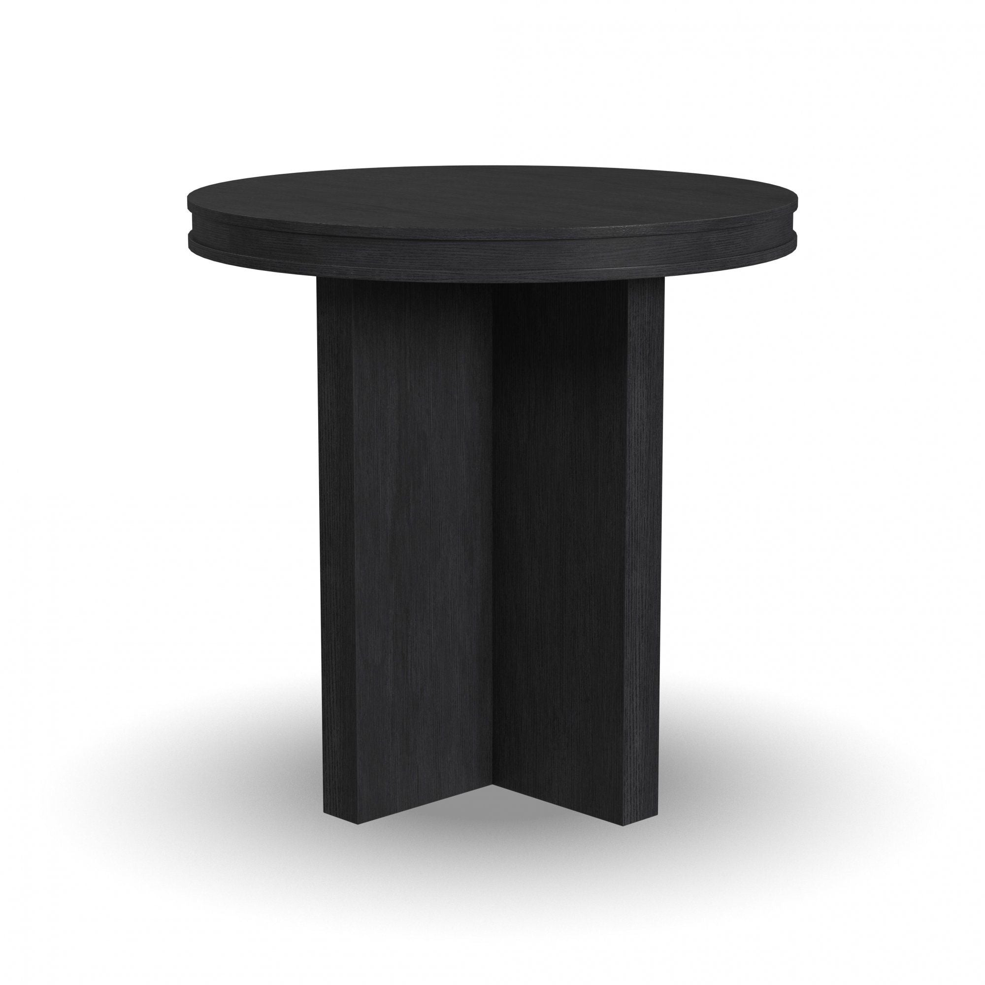 Add effortless style and architectural appeal to your living room with the Waterfall round end table. This striking table features a timeless silhouette defined by clean lines and simple geometric shapes, including a substantial sculptural crisscross base that supports the top. Group and nest this table with the coordinating Waterfall round coffee table for added visual interest and function. The Waterfall round end table is well-crafted from solid rubberwood with oak veneers and features a warm, light oak finish for lasting beauty.